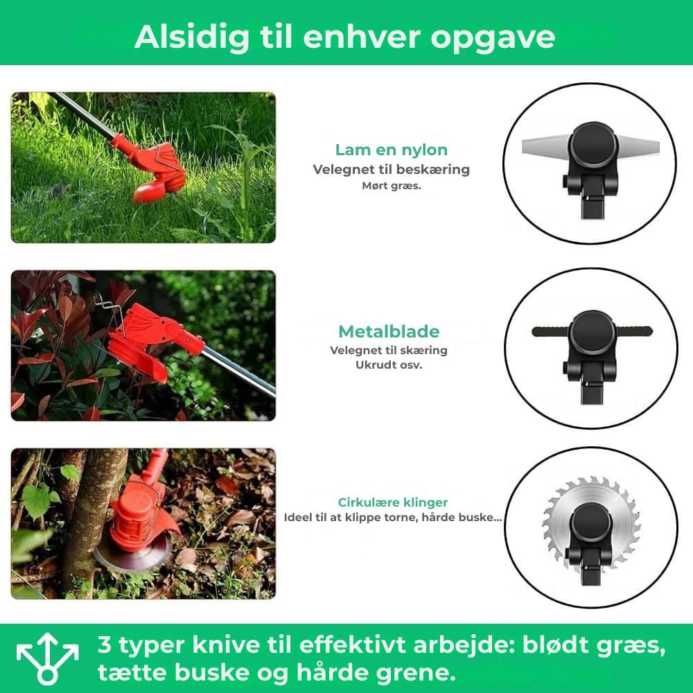 Ja, D80 PRO er udstyret med en rustfri stålklinge, der er specielt designet til at skære tykke grene og tætte buske uden besvær.