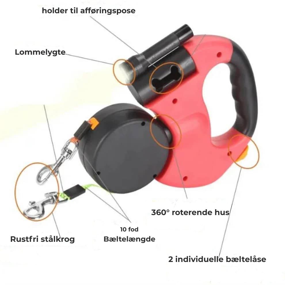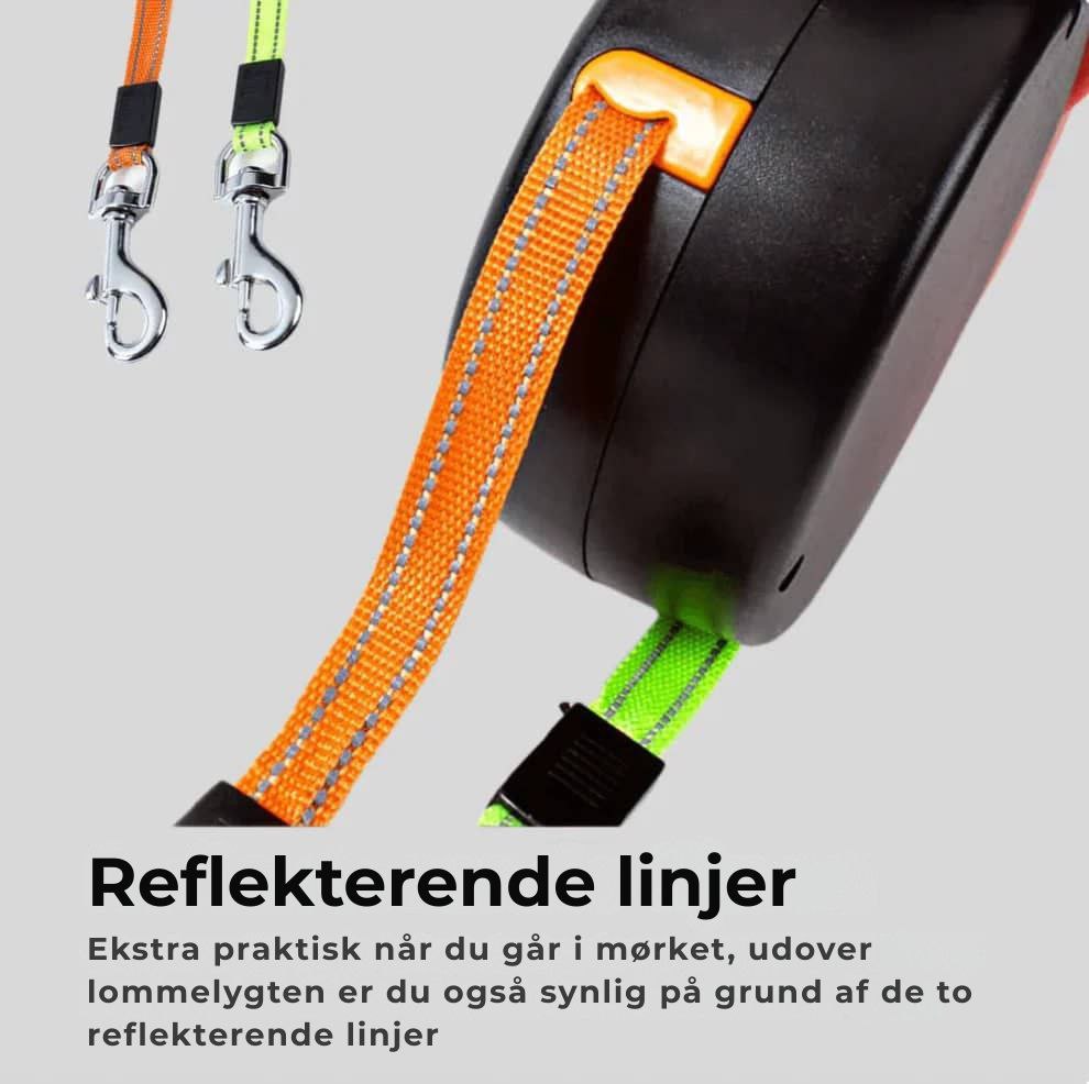 Gå tur med to hunde samtidig uden kaos. Takket være det 360° roterende system forbliver linerne altid fri for knuder, uanset hvor livlige dine hunde er. Ikke mere bøvl med stop, udredning eller stress – bare nyd en glidende gåtur.