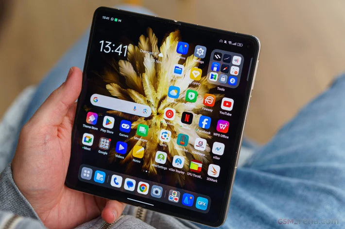 Smartphonen har ultratyndt glas (UTG) og et forstærket hængsel, designet til mange foldninger, samtidig med at den føles let og behagelig i hånden.