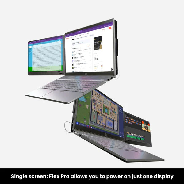 Udvid din arbejdsplads med 200 % ved hjælp af Dobbelte Bærbare Skærme. Designet til at forbedre personlige arbejdsgange og booste din effektivitet uanset hvor du befinder dig.